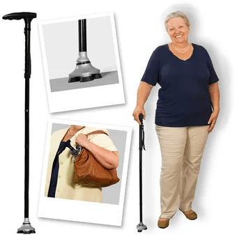 Este innovador bastón esta diseñado para facilitarte la movilidad y brindarte una mayor seguridad al caminar, tiene un punto de apoyo triple para afirmarte mucho mejor al suelo, junto con su base giratoria que lo hacen adaptarse a las irregularidades del camino.