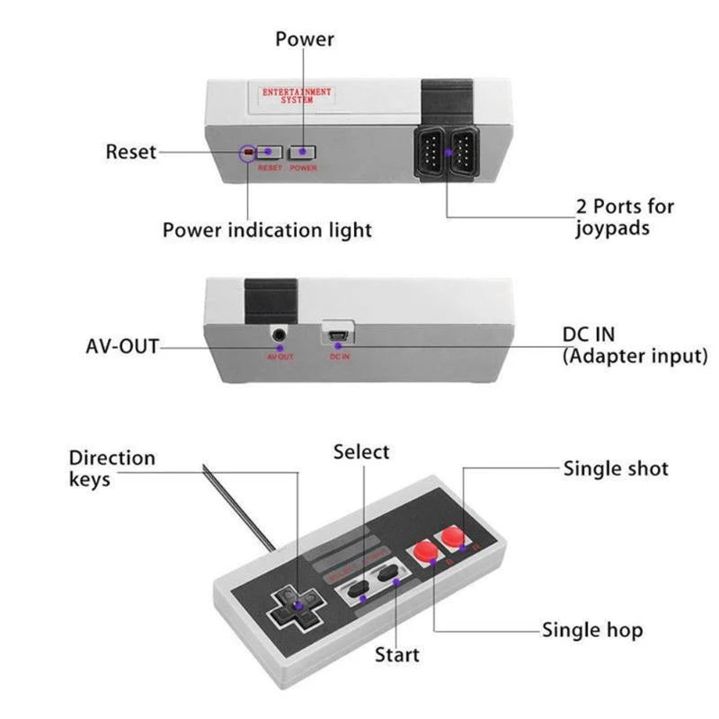 Advertencia: asegúrate de que tu televisor dispone de puertos de entrada AV, la calidad de imagen de videojuegos de 8 bits no es tan clara como los juegos de hoy en día. (No funciona con HDMI)