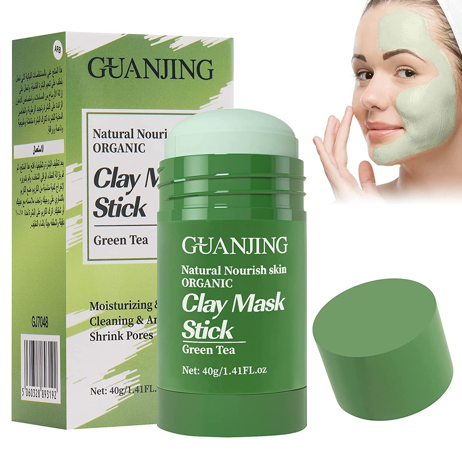 INGREDIENTES NATURALES: GEEN MASK contiene una combinación de extracto de té verde, glicerina y vitamina E que puede limpiar eficazmente los poros de la piel, limpiar profundamente la suciedad de la piel, ajustar el equilibrio de agua y aceite de la piel, reponer la humedad de la piel y nutrirla. 100% hipoalergénico.